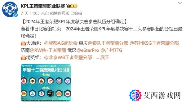 2024年王者荣耀kpl年度总决赛分组确认 十二支队伍蓄势待发2024年王者荣耀kpl年度总决赛分组当前已正式确认,本次比赛共十二支队伍。