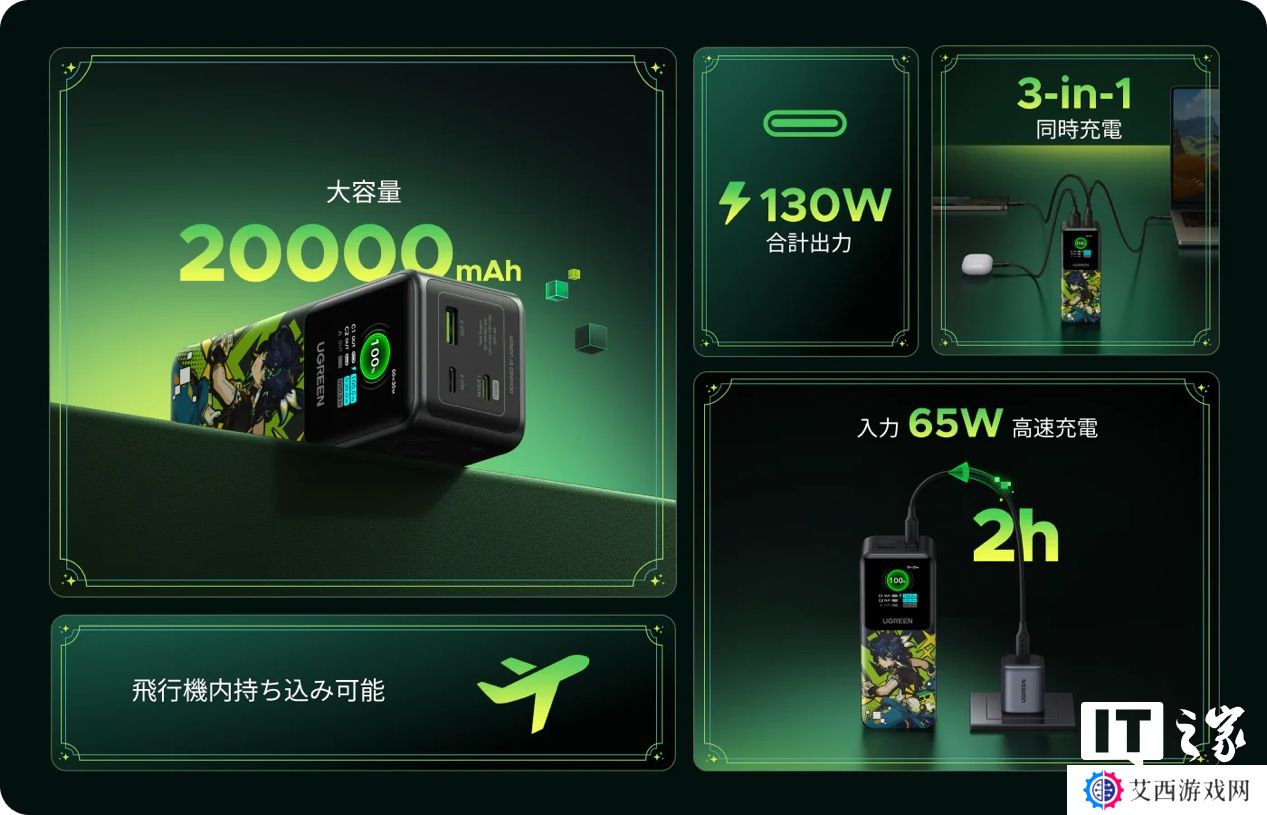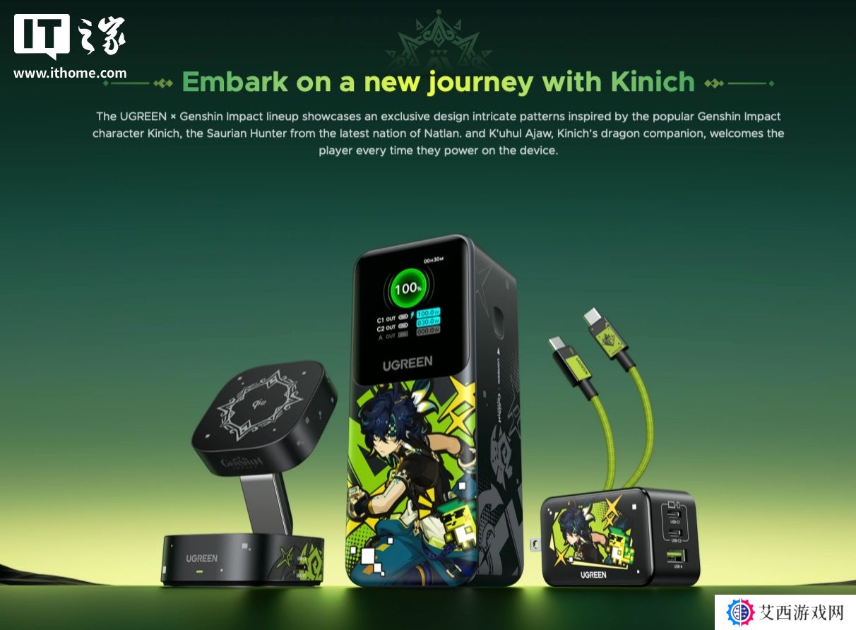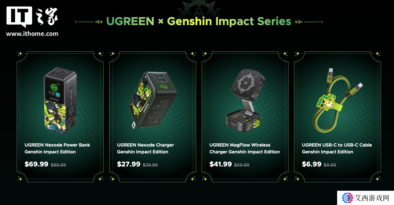 本站 3 月 25 日消息,绿联今日在其海外官网上架了与游戏《原神》联名的充电宝、充电器和充电线商品。