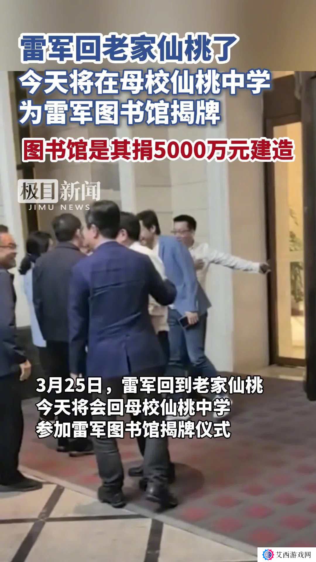 本站 3 月 26 日消息,据极目新闻报道,雷军 3 月 25 日回老家湖北仙桃,今天将在母校仙桃中学为其捐赠 5000 万元建造的雷军图书馆揭牌。