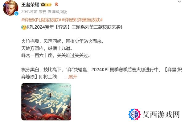 王者荣耀2024夏季赛季后赛持续进行中 弈星全新皮肤即将上线。当前王者荣耀2024夏季赛季后赛持续进行中,官方也在此时发布了有关弈星的kpl限定皮肤消息。